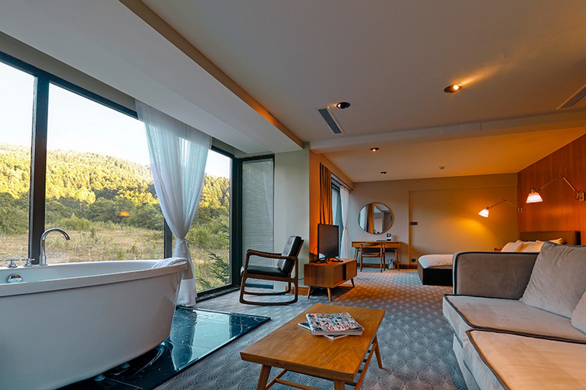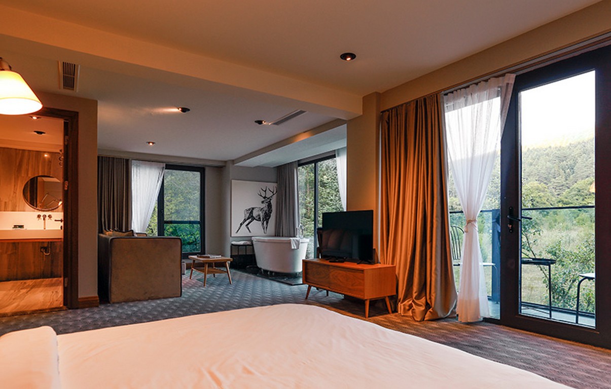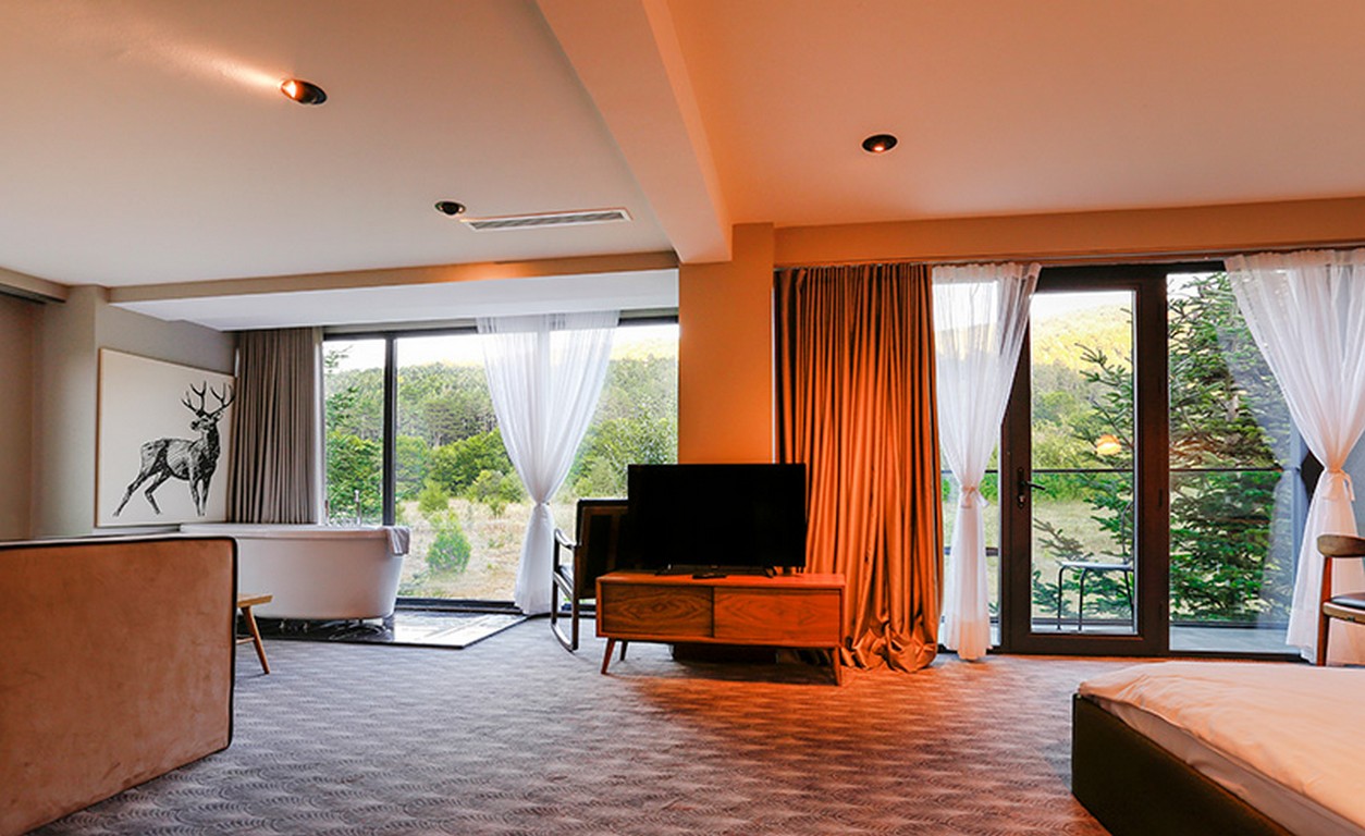 45m² olan odamız muhteşem bir manzara ile keyfinize keyif katacak. İki adet lavabo, büyük koltuklar, kitchenaid wi-fi, klima, minibar ve TV bulunan odalarımızda tatilin en huzurlusunu yaşayacaksınız.